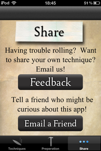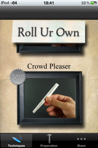 Roll Your Own is een gratis applicatie met heldere instructies voor het draaien van een sigaret. Je krijgt voor het rollen van een sigaret zonder en mét tip foto's en zelfs video's te zien.